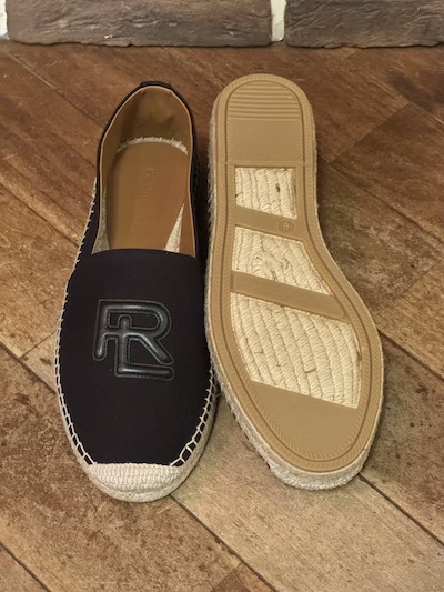RALPH LAUREN PURPLE LABEL BLACK ESPADRILLES” MADE IN SPAIN” (エスパドリーユ)SIZE :8E(26.0〜26.5cm) 全長28.5(最大部),横幅9.6(最大部) SIZE :9E(27.0〜27.5cm) 全長29(最大部),横幅10(最大部) 生産国:SPAIN MATERIAL:CANVAS×RUBBER SOLE SALE 46,970円→32,780円 (TAX IN)