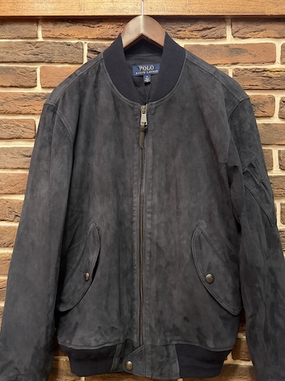 POLO RALPH LAUREN (ポロラルフローレン) GOAT SUEDE LEATHER FLIGHT JACKETSIZE :M(cm) 着丈63/身幅57/肩幅48/袖丈63 生産国:INDIA MATERIAL:SHELL:100%GOAT SUEDE RIB:80%ACRYLIC,20%WOOL, 1%NYLON,1%ELASTANE BODY LINING 100%COTTON SLEEVE LINING 54%POLYESTER,46%POLYESTER SALE 107,800円→99,900円 (TAX IN)