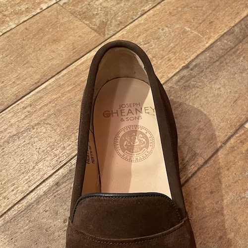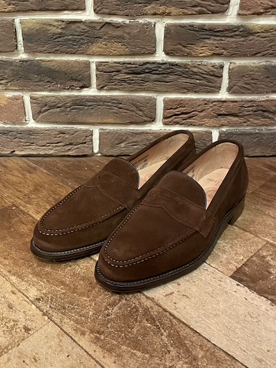 JOSEPH CHEANY&SONS HUDSON LOAFER (スウェードコインローファー)SIZE :UK6F (US7D,25.0) 全長27.5(最大部),横幅9.5(最大部),ハイト(地面から)8.5 SIZE :UK6 1/2F (US7 1/2 D,25.5) SOLD OUT 全長28(最大部),横幅10(最大部),ハイト(地面から)8.5 生産国:ENGLAND MATERIAL:カーフスキン/OUT SOLE:シングルレザーソール SALE 39,900円→32,780円 (TAX IN)