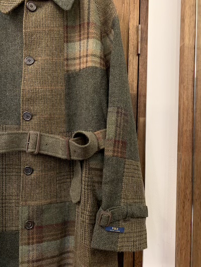 POLO RALPH LAUREN 100%WOOL PATCHWORK TOPCOAT”MADE IN ITALY”SIZE :40R(M)(cm) 着丈104/身幅57/ 肩幅(ラグランスリーブの為、計測無し)/袖丈80.5(首の付け根から計測) 生産国:ITALY MATERIAL:SHELL,100%WOOL BODY LINING 100%CUPRO