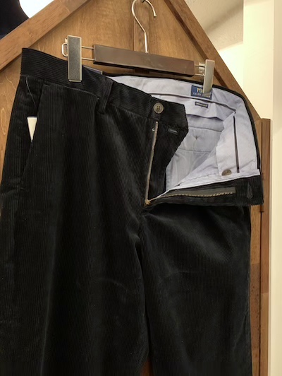 POLO RALPH LAUREN (ポロラルフローレン) BLACK CORDUROY PANTS (ストレッチ太畝コーデュロイパンツ)SIZE :W30xL30(cm) SOLD OUT W81/股上27/股下73/わたり幅31/裾幅20.5 SIZE :W32xL30(cm) W84/股上28/股下76/わたり幅32.5/裾幅21 生産国:INDONESIA MATERIAL:99%COTTON, 1%ELASTANE 16,280円(TAX IN)