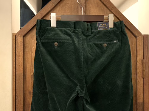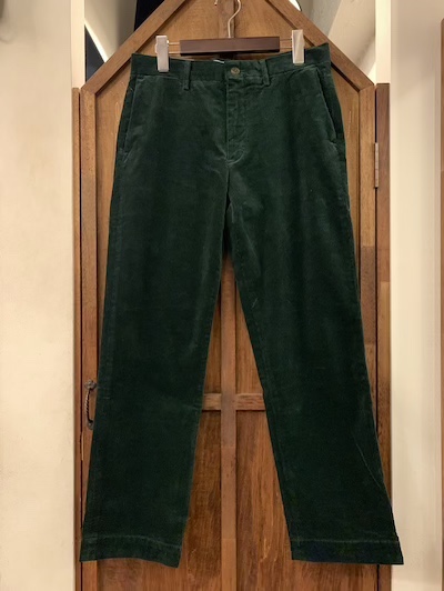 POLO RALPH LAUREN (ポロラルフローレン) GREEN CORDUROY PANTS (ストレッチ太畝コーデュロイパンツ)SIZE :W30xL30(cm) W81/股上27/股下31/わたり幅31/裾幅20.5 SIZE :W30xL32(cm) W81/股上27/股下79/わたり幅31/裾幅20.5 SIZE :W32xL30(cm) W84/股上28/股下76/わたり幅32.5/裾幅21.5 生産国:INDONESIA MATERIAL:99%COTTON, 1%ELASTANE 16,280円(TAX IN)