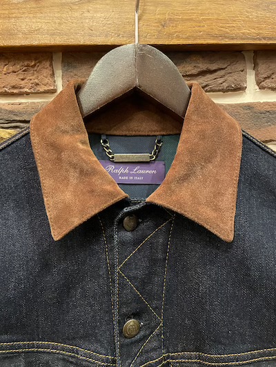 RL PURPLE LABEL (ラルフローレンパープルレーベル) SUEDE×DENIM TRUCK JACKET”MADE IN ITALY”SIZE :S(cm) SOLD OUT 着丈59.5/身幅50.5/肩幅43/袖丈63.5 SIZE :M(cm) 着丈61.5/身幅55/肩幅45/袖丈64.5 生産国:ITALY MATERIAL:SHELL 98%COTTON,2%POLYESTER COLLAR&CUFF :100%COW LEATHER LINING:100%COTTON SLEEVE LINING:100%VISCOSE 69,080円(TAX IN)