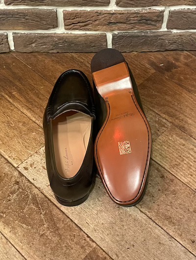 RALPH LAUREN PURPLE LABEL CHALMERS LOAFER ” MADE IN ITALY” (オリーブローファー)SIZE :8D(26.0〜26.5cm) 全長27.5(最大部),横幅9.6(最大部) SIZE :9D(27.0〜27.5cm) SOLD OUT 全長28.5(最大部),横幅9.8(最大部) 生産国:ITALY MATERIAL: LEATHER×LEATHER SOLE SALE 59,180円→49,940円 (TAX IN)