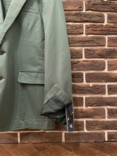 | POLO RALPH LAURENよりGREEN 2B SPORTS COATが入荷しました。 ミディアムオンスのコットンツイル地を採用、その色味は激渋な落ち着いたグリーン。 その上、ぱっと見は全く分かりませんがストレッチ混の生地で着用しやすい仕上がり、襟裏と本切羽部分ににはレジメンタルの装飾でRUGBYブランドのそれを思い出させる出来。 細部も3ポケット、ノッチドラペルのローリングダウン2Bスタイルと親しみやすいスタンダードなスポーツコートでバックはサイドベンツスタイル。 ウエストも2本のダーツで絞られバランスがとれ凄く美しいです。 通好みな色味と確かな生地、このご時世このQUALITYでこのお値段、激しくお勧めです!!! 〜ONLINE STORE 2号店RHYTHM 2.0もよろしくお願いします。〜 |