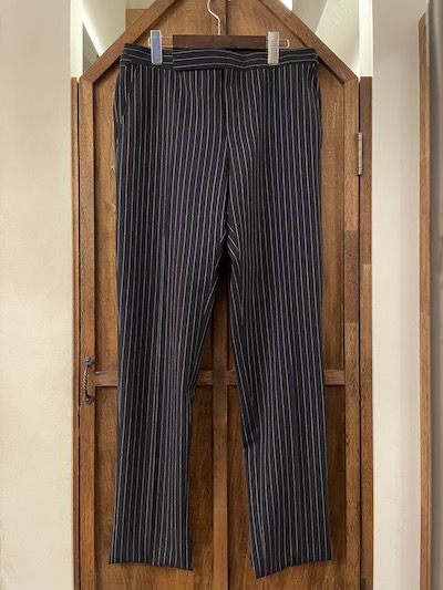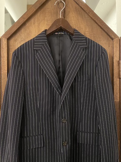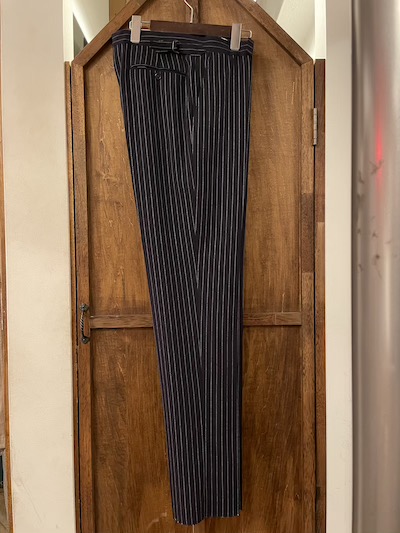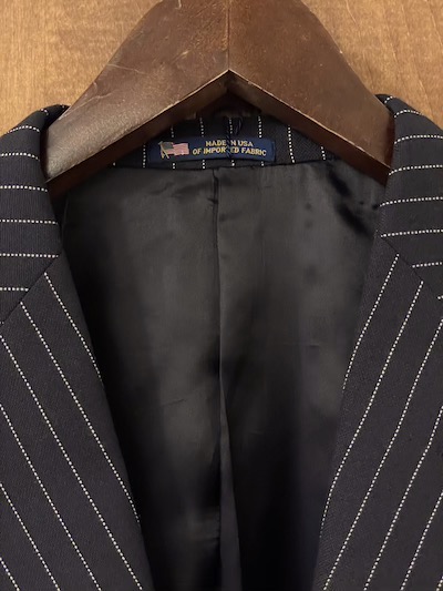 POLO RALPH LAUREN (ポロラルフローレン) PINSTRIPE SUITS ”MADE IN USA”SIZE :40S(M,着丈短め)(cm)(TOPS) 着丈70/身幅52/肩幅45/袖丈60 SIZE :W33cm (PANTS) W85/股上29.5/股下(未縫製)88/わたり幅32/裾幅18(股下76cmで計測) SIZE :40R(M,着丈レギュラー) SOLD OUT(cm)(TOPS) 着丈73/身幅52/肩幅45/袖丈60 SIZE :W33cm (PANTS) W85/股上29.5/股下(未縫製)88/わたり幅32/裾幅18(股下76cmで計測) 生産国:CHINA MATERIAL:SHELL:100%WOOL LINING:100%VISCOSE 100%VISCOSE 76,780円(TAX IN)