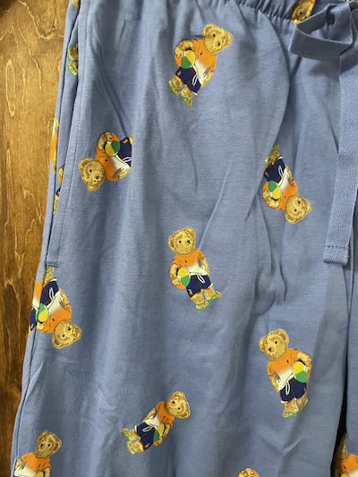 POLO RALPH LAUREN (ポロラルフローレン) POLO BEAR PAJAMA SET UPSIZE S(cm) SOLD OUT (TOPS) 着丈70/身幅48/肩幅44/袖丈65 (PANTS) W72(ラバー入り)/股上31/股下78/わたり幅29/裾幅15 SIZE :M(cm) (TOPS) 着丈70.5/身幅54/肩幅45.5/袖丈65.5 (PANTS) W77/股上31/股下78/わたり幅30/裾幅16 生産国:VIETNAM MATERIAL:SHELL:100%COTTON 14,960円(TAX IN)