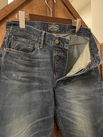 POLO RL POLO COUNTRY (ポロカントリー) BUCKLE BACK 5P JEANS W32,W33 (バックルバックジーンズ)SIZE :W32xL32(cm) SOLD OUT W84/股上28/股下74/わたり幅33/裾幅21.5 SIZE :W33xL34(cm) W87/股上29/股下77/わたり幅35/裾幅22 生産国:TUNISIA MATERIAL:100%COTTON 29,700円(TAX IN)