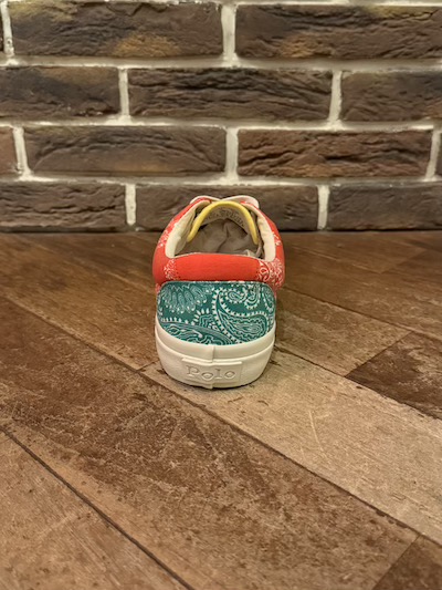 POLO RALPH LAUREN (ラルフローレン) KEATON PAISLEY SNEAKER (ペイズリースニーカー)SIZE :8D(26.0〜26.5cm) SOLD OUT 全長29.5(最大部),横幅10.2(最大部)/高さ7(地面より) SIZE :9D(27.0〜27.5cm) 全長29(最大部),横幅10.2(最大部)/高さ7(地面より) 生産国: CHINA MATERIAL: CANVAS×RUBBERR SOLE 14,960円(TAX IN)
