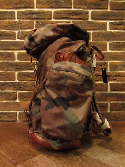 SIZE :(cm)W(横幅)42(両ポケット部分も含め)/H(高さ)45/D(マチ)16/ストラップ(調節可)