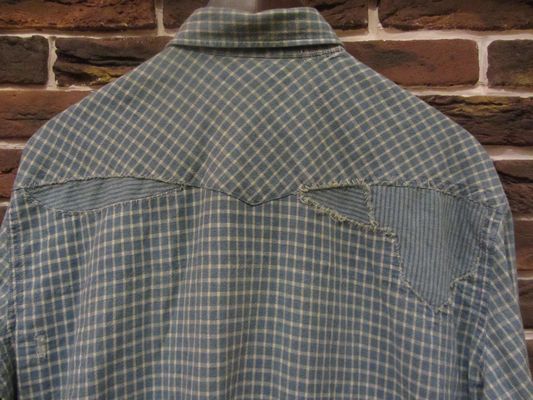 RRL (ダブルアールエル) ”INDIGO DYE” PATCHWORK WESTERN SHIRTS (インディゴダイパッチワークウエスタンシャツ)SIZE :2(cm) 着丈73/身幅52/肩幅45.5/袖丈60.5 SIZE :3(cm) SOLD OUT 着丈75/身幅54/肩幅47/袖丈60.5 生産国:CHINA MATERIAL:100%COTTON 15,540円(TAX IN)