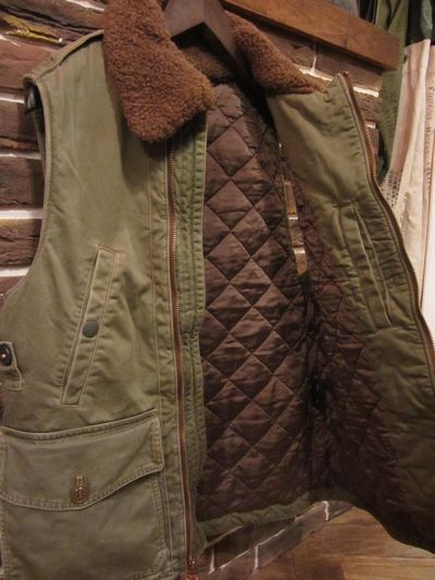 RRL (ダブルアールエル) ”B-10”MOD VEST (B-10モディファイドベスト)SIZE :S(cm) SOLD OUT 着丈65/身幅51/肩幅37 SIZE :M(cm) 着丈68/身幅54.5/肩幅38 生産国:CHINA MATERIAL:SHELL/100%COTTON,LINING100%CUPRO,100%REAL SHEARLING LAMB FUR(ITALY) SALE 39,900円→29,190円 (TAX IN)