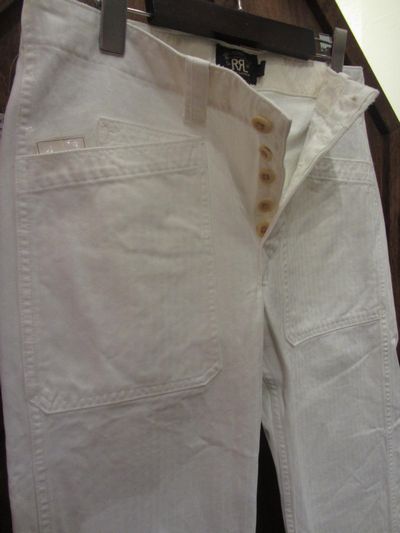 RRL (ダブルアールエル) HBT BAKER PANTS (ホワイトヘリンボーンベーカーパンツ)SIZE :W28(cm) SOLD OUT W79/股上26/股下79/わたり幅30/裾幅21.5 SIZE :W29(cm) W84/股上26/股下79/わたり幅30/裾幅22.5 SIZE :W31(cm) SOLD OUT W88/股上28/股下81/わたり幅32.5/裾幅24 生産国:CHINA MATERIAL:100%COTTON SALE 18,690円→13,440円 (TAX IN)