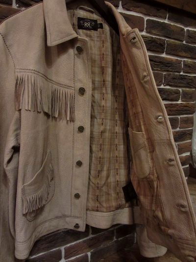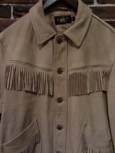 RRL (ダブルアールエル) DEERSKIN TRUCK JACKET (オールディアスキントラックジャケット)SIZE :L(cm) 着丈63cm/身幅56cm/肩幅47cm/袖丈66cm 生産国:CHINA MATERIAL: SHELL/100%REAL DEERSKIN、 BODY LINING/100%COTTON、 SLEEVE LINING/100%CUPROSALE 68,040円→41,790円 (TAX IN)