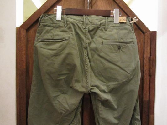 RRL (ダブルアールエル) REGULATION CHINO TROUSER (チノトラウザー)SIZE :W30×L30(cm) SOLD OUT W81/股上27.5/股下76.5/わたり幅30/裾幅22.5 SIZE :W32×L32(cm) W88/股上29/股下80/わたり幅33/裾幅23.5 生産国:CHINA MATERIAL:100%COTTON 16,590円(TAX IN)