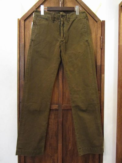 RRL (ダブルアールエル) OFFICERS CHINO TROUSER ”GARMENT DYE FADED DARK BROWN” (オフィサーズチノトラウザーダークブラウン)SIZE :W30×L32(cm) W80/股上25/股下81/わたり幅29/裾幅20 SIZE :W32×L32(cm) SOLD OUT W84/股上26.5/股下81/わたり幅30/裾幅21.5 生産国:CHINA MATERIAL:100%COTTON 17,064円(TAX IN)