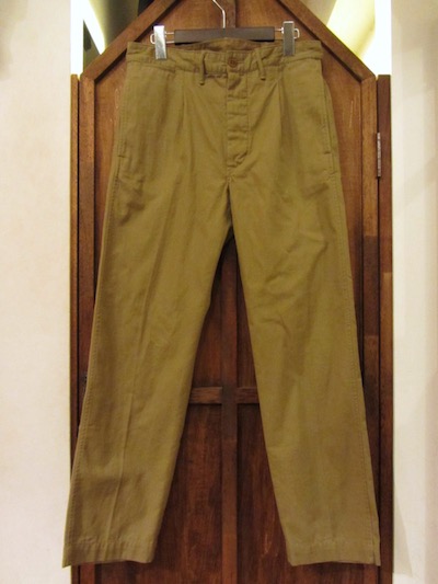 RRL (ダブルアールエル) KAHKI TROUSER (タック入りミリタリートラウザー)SIZE :W30xL30(cm) W80/股上27.5/股下72/わたり幅30/裾幅19.5 SIZE :W32xL30(cm) SOLD OUT W84/股上29/股下73.5/わたり幅33/裾幅20.5 SIZE :W32xL32(cm) SOLD OUT W84/股上29/股下78.5/わたり幅33/裾幅20.5 生産国:CHINA MATERIAL:100%COTTON 19,224円(TAX IN)