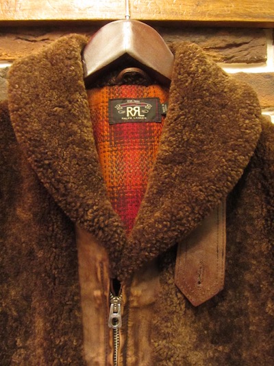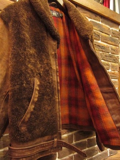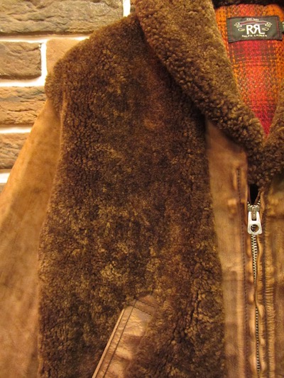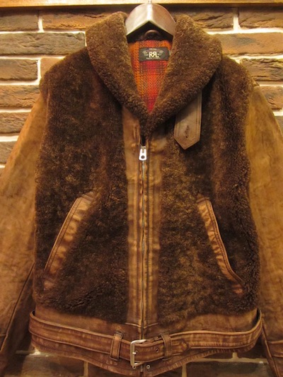 RRL (ダブルアールエル) EDDINGTON JACKET (グリズリージャケット)SIZE :M(cm) 着丈61(後56)/身幅52/肩幅45/袖丈59.5 生産国:CHINA MATERIAL: SHELL 100%LAMB SHEARLINGx100% COW LEATHER LINING 70%WOOL,30%NYLON SLEEVE LINING 100%COTTON 213,840円(TAX IN)