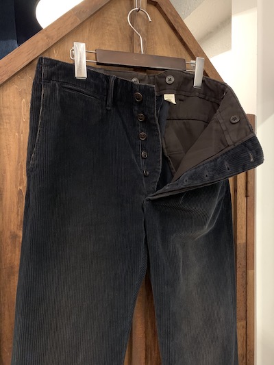 | RRL(ダブルアールエル)よりINDIGO CORDUROY TROUSER”SAMPLE” #1が入荷しました。 RRLの人気種である太畝INDIGO CORDUROY TROUSERのサンプルバージョンが入荷!! 雰囲気最高な日本製の太畝のインディゴコーデュロイ生地を採用。 コーディネートし易い絶妙な色味は素晴らしく、洗いを掛けほんのり使用感を出した肉厚且つ重量感のある生地感が◎。 また同作はサンプルバージョンなので染色具合が異なりこれはこれで”渋い”仕上がりです。 またフォルムはRRLの人気アイテムであるオフィサーズチノと同じでコインポケットを加えた5ポケットスタイル、バックは両玉縁のポケットスタイル。 オフィサーズチノ同様に細めのすっきりとしたストレートのシルエットも抜群。 RRLらしいプロダクトな同品、今作も間違いない出来栄えです!! ※サンプルではない通常のバージョンもご用意がございます。こちらからW32xL32、W33xL32。 サンプルモデルの為、商品タグは付属しておりません。予めご了承の上、お買い求め下さいませ。 |
