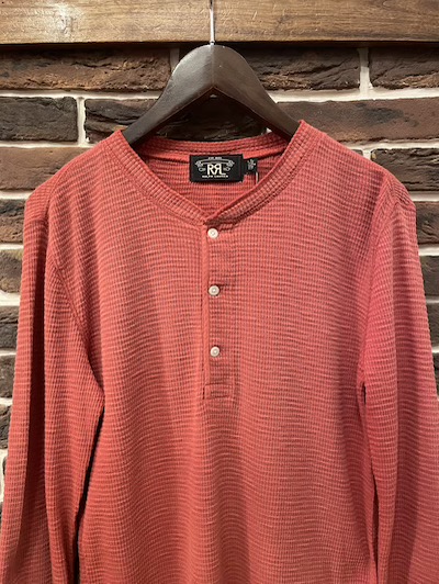 RRL (ダブルアールエル) HENLEYNECK THERMAL SHIRTS” TRADING POST RED” (サーマルシャツ”レッド”)SIZE :M(cm) 着丈66/身幅46/肩幅43/袖丈64 SIZE :L(cm) SOLD OUT 着丈66.5/身幅51/肩幅48/袖丈65 生産国:INDIA MATERIAL:100%COTTON SALE 16,940円→13,970円 (TAX IN)
