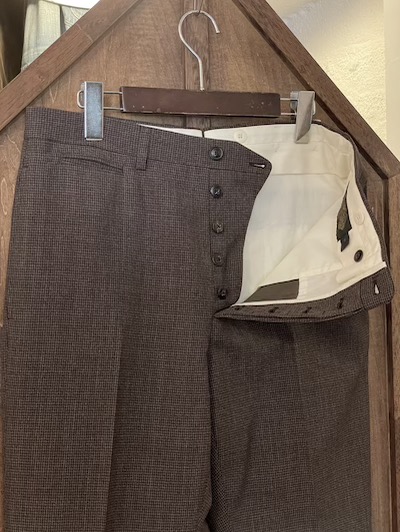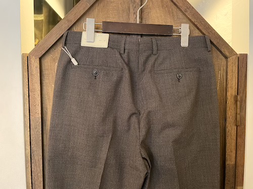 | RRL(ダブルアールエル)よりBROWN HOUNDSTOOTH PANTS”MADE IN ITALY”が入荷しました。 RRLのドレスウェアのカテゴリーである”CLOTHING"から超クラシックな色味と柄のパンツが入荷!!! ブラウン系の 斑ら色味とザラザラした生地感の格子地が時代背景を掻き立てるRRLらしいスペシャルなスーツ。 パンツはすっきりとした細身のストレートのシルエットで、ベルトループも付属、内側にサスペンダーボタン、片玉縁のバックポケットスタイル、ハイウエスト仕様で激クラシックな仕上がりです。 得意な色味と独特な生地感に魅了される超アナログでダンディなプロダクト、是非この機会に!!!! US定価PANTS$490。 ※こちらのジャケットと同生地となりSETUPでの着こなしもオススメです。 ※丈が調節できるように未縫製の状態でのお渡しになります。 |