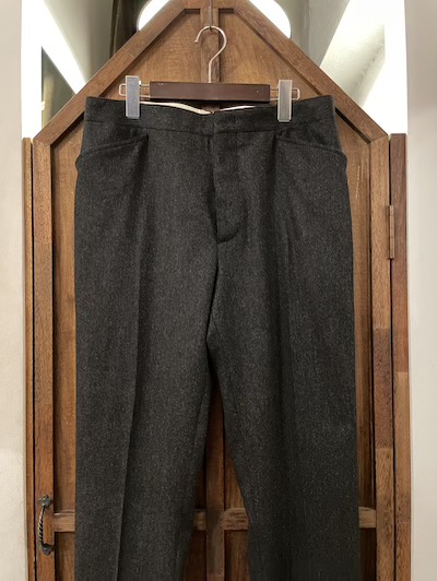 | RRL(ダブルアールエル)よりBRYANT SUITS PANTS”MADE IN ITALY”が入荷しました。 RRLのドレスウェアのカテゴリーである”CLOTHING"より杢グレーのスーツパンツが入荷!!! そのミディアムオンスのウールツイル地は白糸が芽吹き、正に時代背景を掻き立てるファブリックが秀逸なRRLらしい逸品。 細部もアールデコ調のシンチバック、内側にサスペンダーボタン、両サイドのポケットは湾曲したL地型、両玉縁のバックポケットスタイル、ハイウエスト仕様で激クラシックな仕上がりです。 スリム過ぎないすっきりとした程よいストレートのシルエットも最高! その独特なオーラに魅了される素晴らしいプロダクトです!!!! US定価、PANTS$490。 ※こちらのジャケットと同生地となりSETUPでの着こなしもオススメです。 ※丈が調節できるように未縫製の状態でのお渡しになります。 |