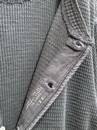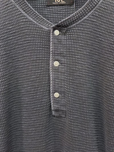 RRL (ダブルアールエル) HENLEYNECK THERMAL SHIRTS” GARMENT DYE NAVY” (サーマルシャツ”ネイビー”)SIZE :S(cm) SOLD OUT 着丈65/身幅46/肩幅45/袖丈63 SIZE :M(cm) 着丈69/身幅52/幅49/袖丈64 生産国:INDIA MATERIAL:100%COTTON 16,940円(TAX IN)